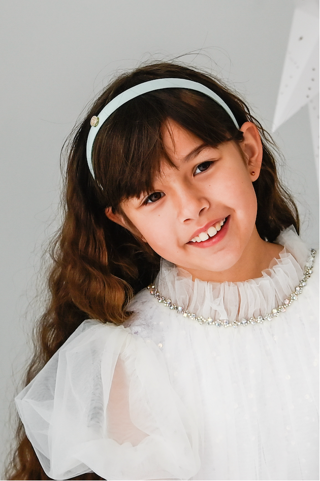 Baby Girls Crystal Mulberry Silk Hairband Aqua
